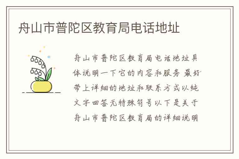 舟山市普陀区教育局电话地址具体说明一下它的内容和服务 最好带上详细的地址和联系方式以纯文字回答无特殊符号
