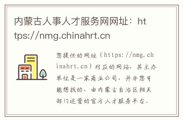 您提供的网址(https://nmg.chinahrt.cn)对应的网站,其主办单位是一家商业公司,并非您可能想找的、由内蒙古自治区相关部门运营的官方人才服务平台。以下为您详细说明,并整理了官方平台的信息。