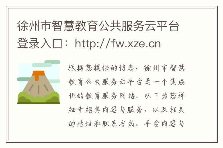 该平台(网址为 http://fw.xze.cn )主要面向徐州市的学校、教职工、学生及家长,提供智慧教育相关的公共服务。其核心内容与服务包括: