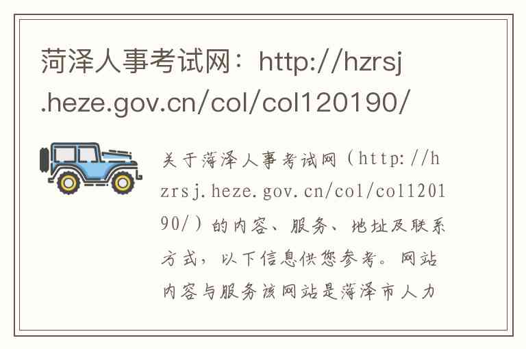 关于菏泽人事考试网(http://hzrsj.heze.gov.cn/col/col120190/)的内容、服务、地址及联系方式,以下信息供您参考。