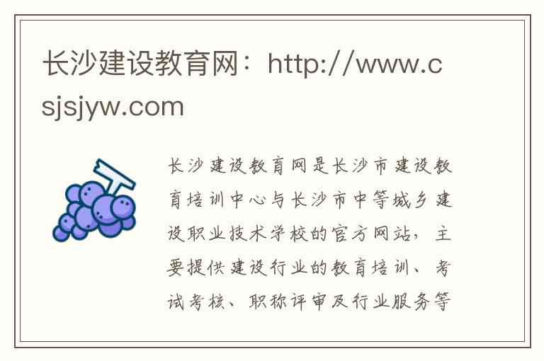 希望以上信息能帮助您全面了解长沙建设教育网。如果您对某项具体业务(如职称考试或特种作业培训)有更深入的疑问,我可以帮您梳理网站上相关的政策文件或通知细节。