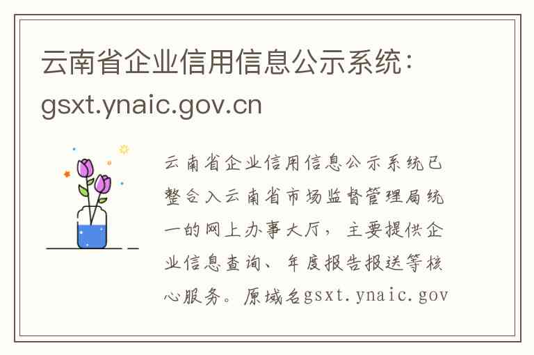 云南省企业信用信息公示系统已整合入云南省市场监督管理局统一的网上办事大厅,主要提供企业信息查询、年度报告报送等核心服务。原域名gsxt.ynaic.gov.cn已变更为新域名,以下是详细说明。