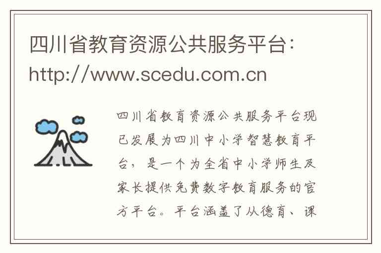 四川省教育资源公共服务平台现已发展为四川中小学智慧教育平台,是一个为全省中小学师生及家长提供免费数字教育服务的官方平台。平台涵盖了从德育、课程学习到教师研修、特色专区等多个板块,并整合了“四川云教”等创新项目,旨在促进教育公平与质量提升。