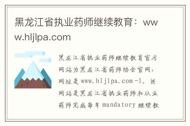 黑龙江省执业药师继续教育官方网站为黑龙江省药师协会官网,网址是 www.hljlpa.com -1。该网站是黑龙江省执业药师和从业药师完成每年 mandatory 继续教育任务的核心平台,同时也提供行业资讯与会员服务。