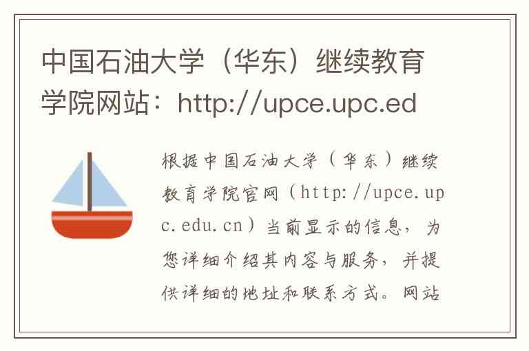 根据中国石油大学(华东)继续教育学院官网(http://upce.upc.edu.cn)当前显示的信息,为您详细介绍其内容与服务,并提供详细的地址和联系方式。