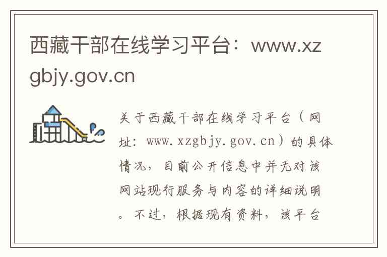 关于西藏干部在线学习平台(网址:www.xzgbjy.gov.cn)的具体情况,目前公开信息中并无对该网站现行服务与内容的详细说明。不过,根据现有资料,该平台可能与中共西藏自治区委员会党校(西藏自治区行政学院)主办的“西藏干部教育网”存在关联或为历史名称。以下基于相关信息,为您梳理其历史状况,并提供当前干部在线学习的相关信息作为参考。