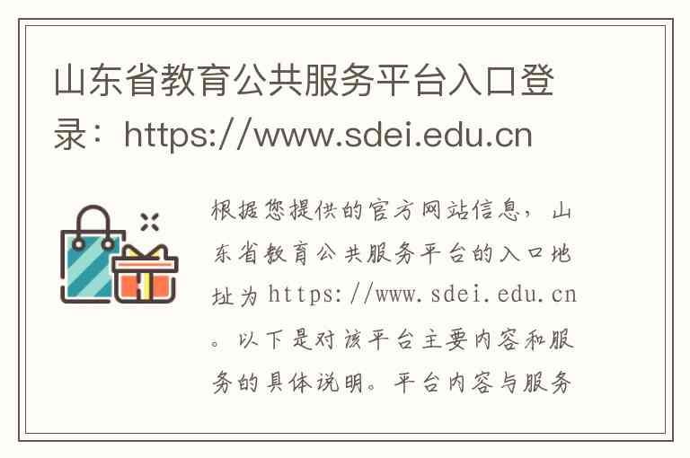 根据您提供的官方网站信息,山东省教育公共服务平台的入口地址为 https://www.sdei.edu.cn。以下是对该平台主要内容和服务的具体说明。