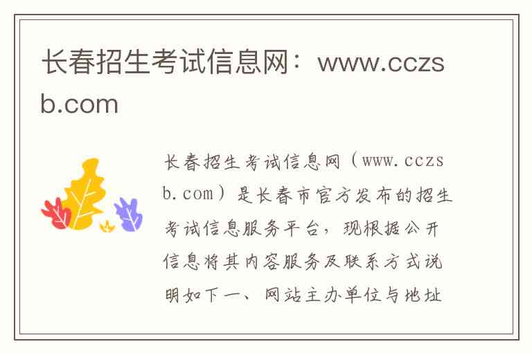 长春招生考试信息网(www.cczsb.com)是长春市官方发布的招生考试信息服务平台,现根据公开信息将其内容服务及联系方式说明如下