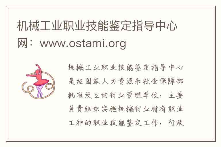 需要说明的是,官方网站 www.ostami.org 主要用于发布行业通知、提供政策支持及信息交流。具体的证书办理、鉴定申报等业务,通常需要通过该中心批准设立的各地分中心或鉴定站进行 -6-9。