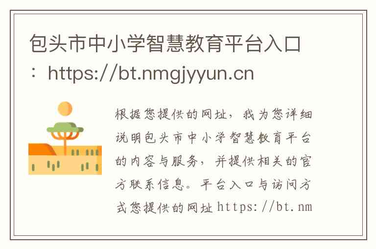 根据您提供的网址,我为您详细说明包头市中小学智慧教育平台的内容与服务,并提供相关的官方联系信息。