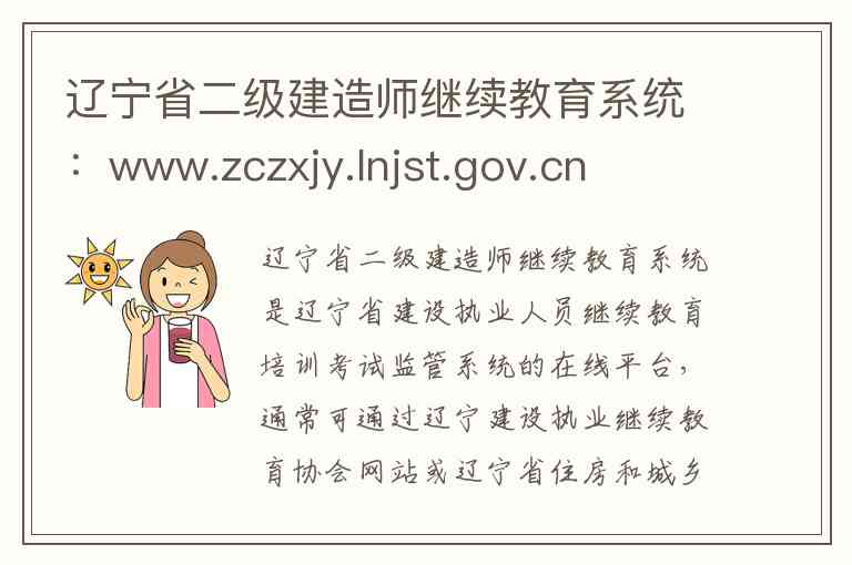辽宁省二级建造师继续教育系统是辽宁省建设执业人员继续教育培训考试监管系统的在线平台,通常可通过辽宁建设执业继续教育协会网站或辽宁省住房和城乡建设厅官网进入-4-8。该系统主要为二级建造师在注册有效期内(每三年一次)提供继续教育服务,完成规定的学时要求以申请逾期初始注册、延续注册或重新注册-6-9。