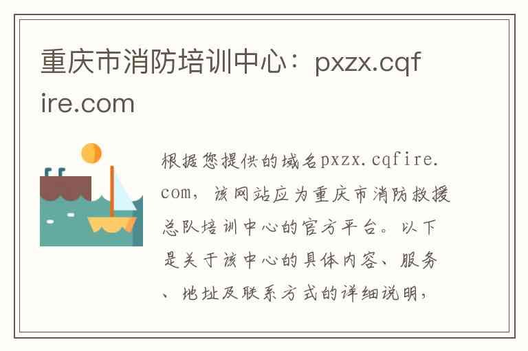 根据您提供的域名pxzx.cqfire.com,该网站应为重庆市消防救援总队培训中心的官方平台。以下是关于该中心的具体内容、服务、地址及联系方式的详细说明,所有信息均为纯文字形式。
