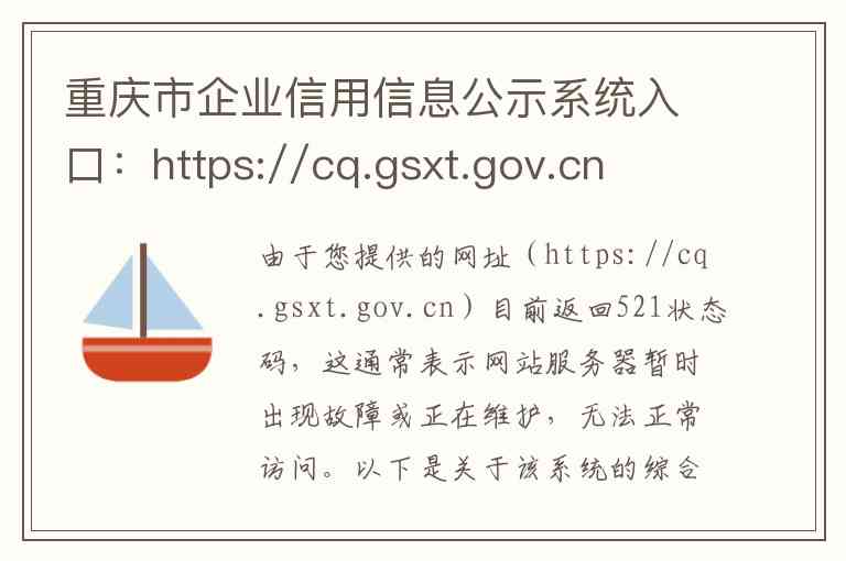 由于您提供的网址(https://cq.gsxt.gov.cn)目前返回521状态码,这通常表示网站服务器暂时出现故障或正在维护,无法正常访问。以下是关于该系统的综合信息,供您参考。