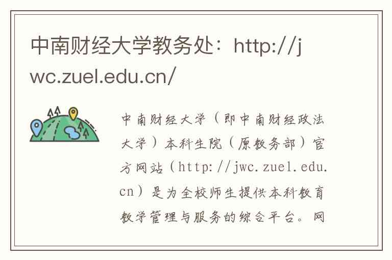 中南财经大学(即中南财经政法大学)本科生院(原教务部)官方网站(http://jwc.zuel.edu.cn)是为全校师生提供本科教育教学管理与服务的综合平台。网站内容全面,涵盖了机构信息、人才培养、规章制度、办事流程和通知公告等核心板块。
