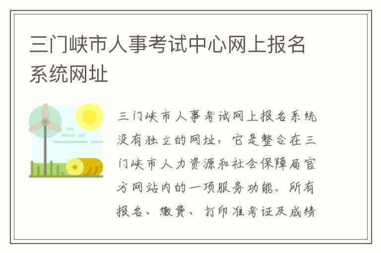 三门峡市人事考试网上报名系统没有独立的网址,它是整合在三门峡市人力资源和社会保障局官方网站内的一项服务功能。所有报名、缴费、打印准考证及成绩查询等操作均需通过该官网进行。