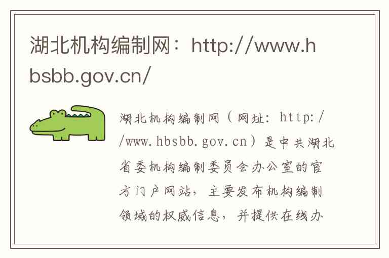 湖北机构编制网(网址:http://www.hbsbb.gov.cn)是中共湖北省委机构编制委员会办公室的官方门户网站,主要发布机构编制领域的权威信息,并提供在线办事与便民服务。以下根据网站内容及公开信息,对其主要板块、服务功能、地址和联系方式进行具体说明。