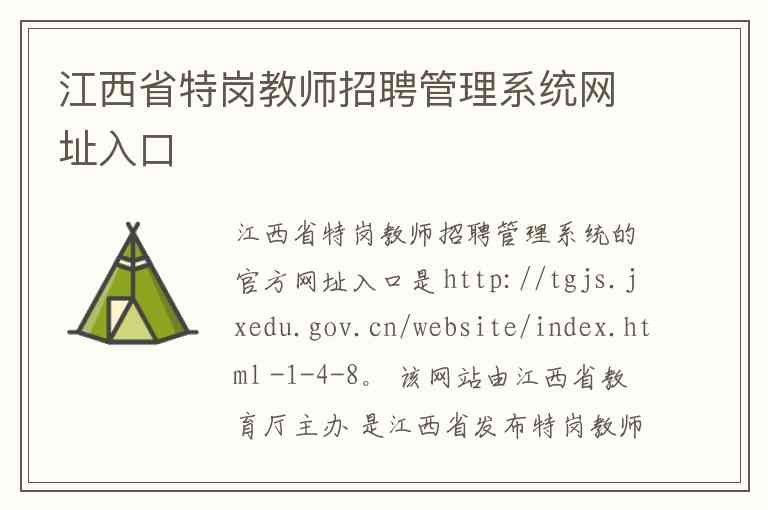 江西省特岗教师招聘管理系统的官方网址入口是 http://tgjs.jxedu.gov.cn/website/index.html -1-4-8。 该网站由江西省教育厅主办 是江西省发布特岗教师招聘信息进行报名和提供相关服务的官方网络平台 -7。