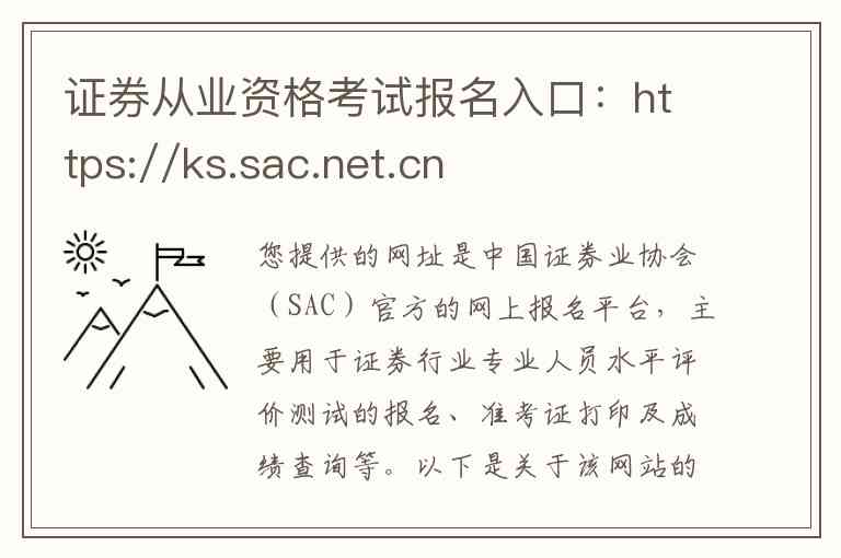 官方网址:中国证券业协会主网站为 www.sac.net.cn,您提供的报名平台是其子域名(ks.sac.net.cn)。