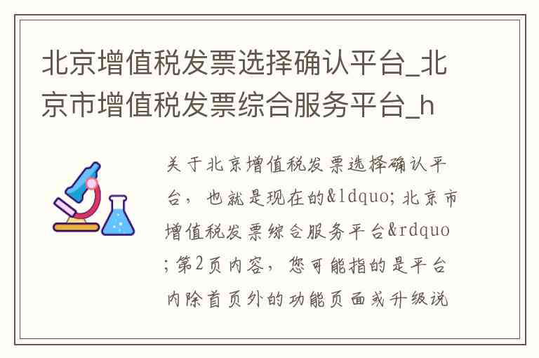 关于北京增值税发票选择确认平台,也就是现在的“北京市增值税发票综合服务平台”第2页内容,您可能指的是平台内除首页外的功能页面或升级说明。以下将为您详细介绍该平台的核心服务、官方地址及联系方式,所有信息均以纯文字形式呈现,无特殊符号。