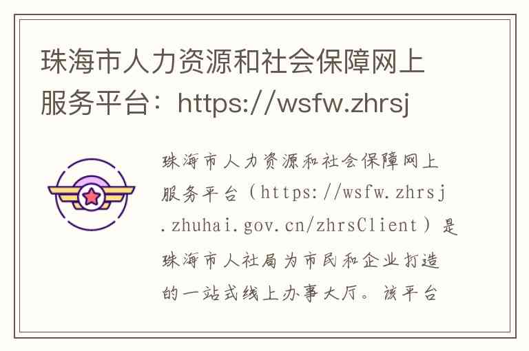 珠海市人力资源和社会保障网上服务平台(https://wsfw.zhrsj.zhuhai.gov.cn/zhrsClient)是珠海市人社局为市民和企业打造的一站式线上办事大厅。该平台整合了就业创业、社会保障、人才人事、劳动关系等领域的高频服务事项,目标在于通过数据互通,让市民和企业少跑腿、好办事。