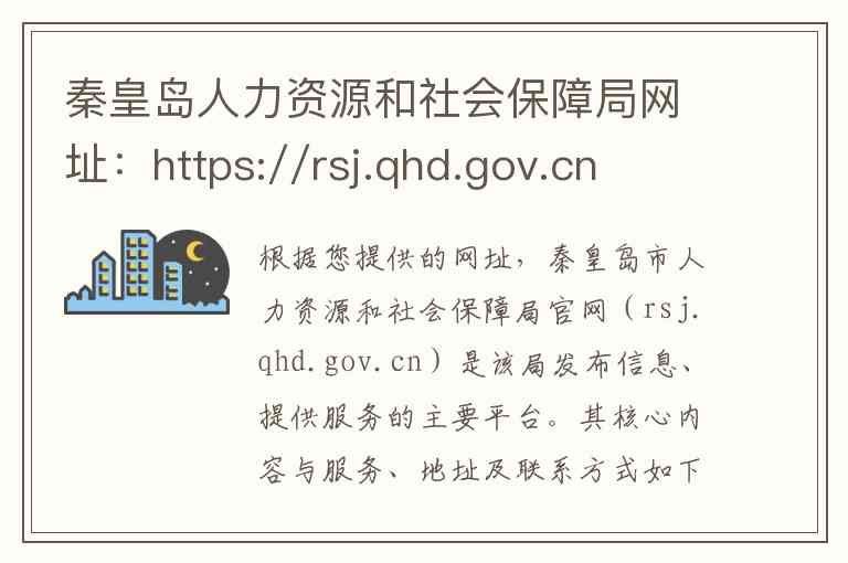 根据您提供的网址,秦皇岛市人力资源和社会保障局官网(rsj.qhd.gov.cn)是该局发布信息、提供服务的主要平台。其核心内容与服务、地址及联系方式如下: