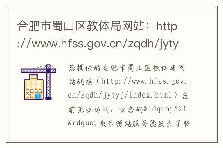 您提供的合肥市蜀山区教体局网站链接(http://www.hfss.gov.cn/zqdh/jytyj/index.html)当前无法访问,状态码“521”表示源站服务器发生了临时故障或正在维护。