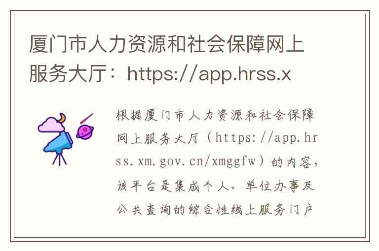 根据厦门市人力资源和社会保障网上服务大厅(https://app.hrss.xm.gov.cn/xmggfw)的内容,该平台是集成个人、单位办事及公共查询的综合性线上服务门户。以下为您整理的具体内容、服务及联系方式: