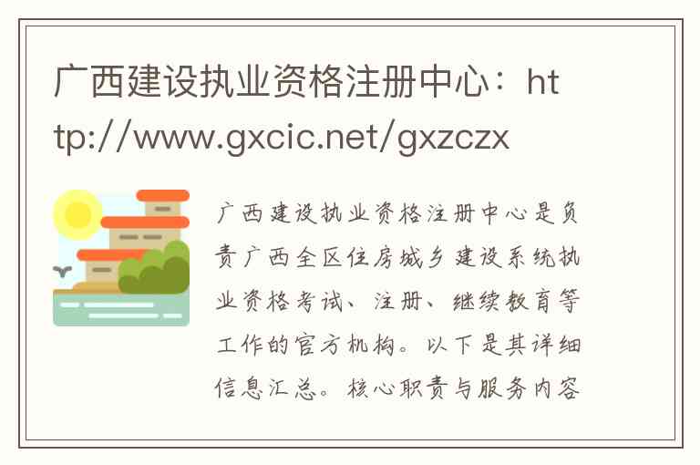 广西建设执业资格注册中心是负责广西全区住房城乡建设系统执业资格考试、注册、继续教育等工作的官方机构。以下是其详细信息汇总。
