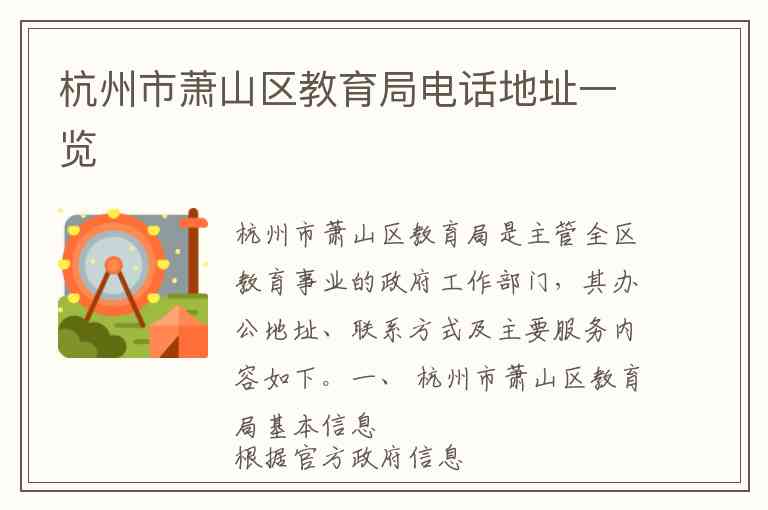 杭州市萧山区教育局是主管全区教育事业的政府工作部门,其办公地址、联系方式及主要服务内容如下。