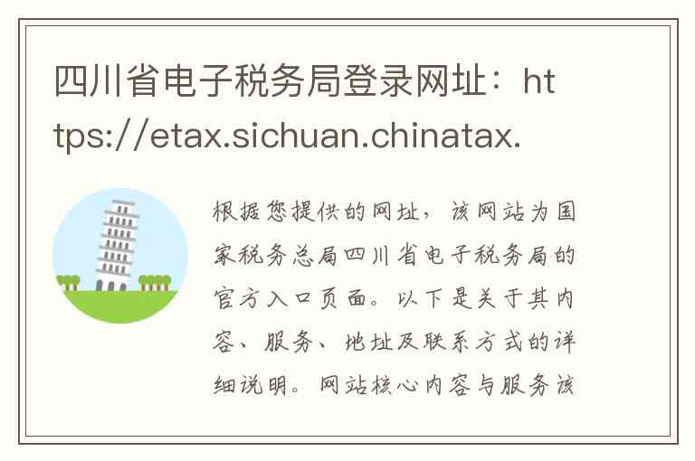 根据您提供的网址,该网站为国家税务总局四川省电子税务局的官方入口页面。以下是关于其内容、服务、地址及联系方式的详细说明。