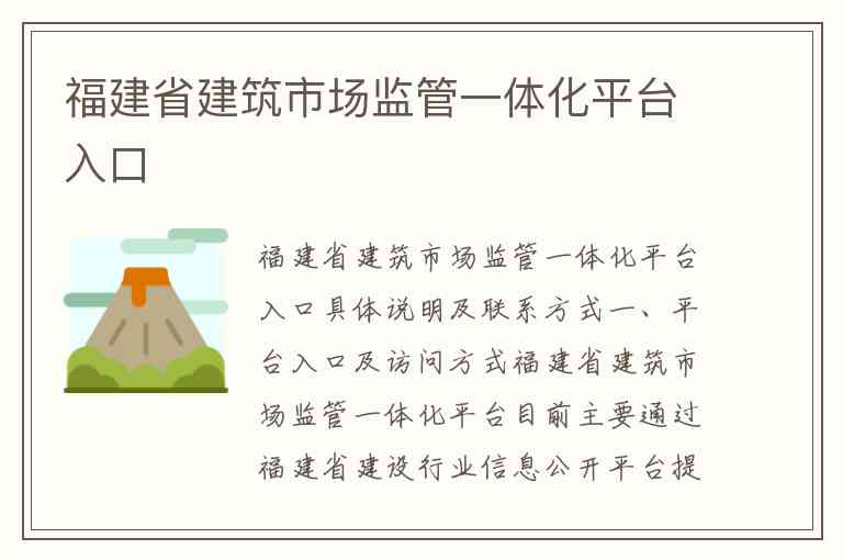 福建省建筑市场监管一体化平台入口具体说明及联系方式