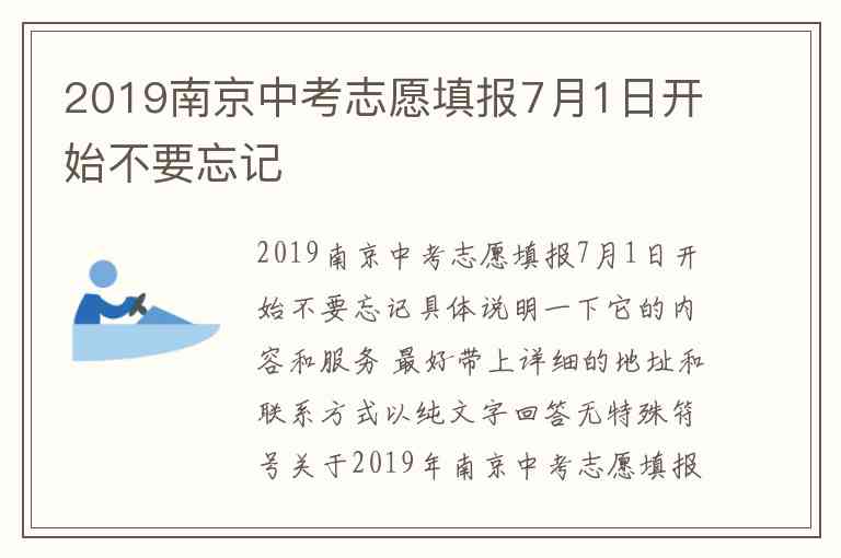 2019南京中考志愿填报7月1日开始不要忘记具体说明一下它的内容和服务 最好带上详细的地址和联系方式以纯文字回答无特殊符号