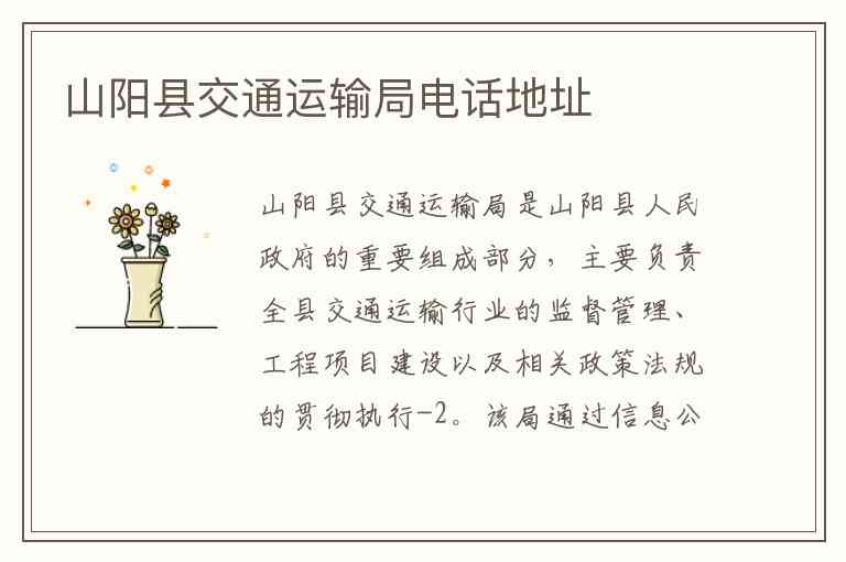 以下是关于山阳县交通运输局的详细地址、联系方式及其主要服务内容的说明。