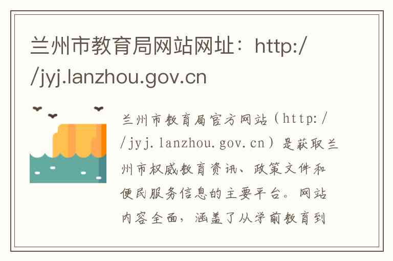 兰州市教育局官方网站(http://jyj.lanzhou.gov.cn)是获取兰州市权威教育资讯、政策文件和便民服务信息的主要平台。网站内容全面,涵盖了从学前教育到职业教育、从招生考试到教师管理的各个方面。