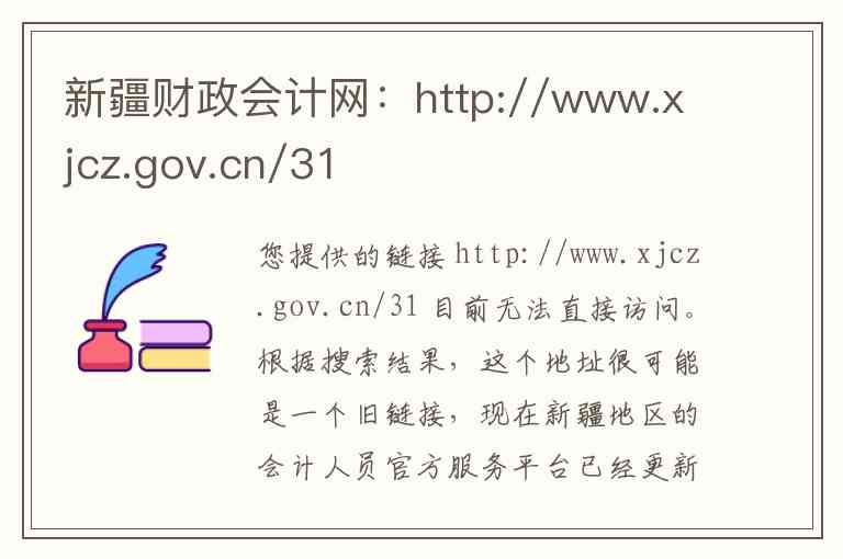 您提供的链接 http://www.xjcz.gov.cn/31 目前无法直接访问。根据搜索结果,这个地址很可能是一个旧链接,现在新疆地区的会计人员官方服务平台已经更新。以下为您整理了该平台的内容、服务以及最新的官方联系信息。