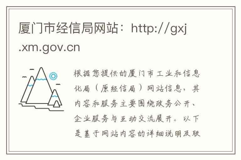 根据您提供的厦门市工业和信息化局(原经信局)网站信息,其内容和服务主要围绕政务公开、企业服务与互动交流展开。以下是基于网站内容的详细说明及联系方式。