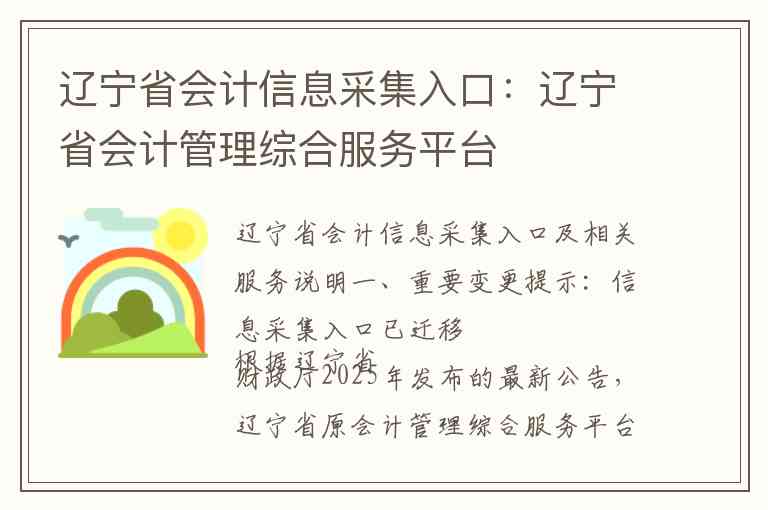 当前办理辽宁省会计信息采集的唯一官方指定入口为:全国会计人员统一服务管理平台。