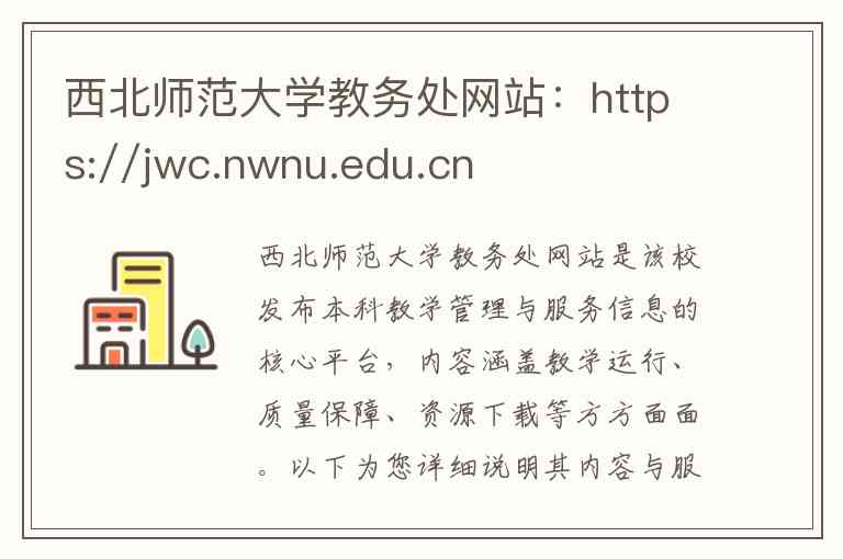 西北师范大学教务处网站是该校发布本科教学管理与服务信息的核心平台,内容涵盖教学运行、质量保障、资源下载等方方面面。以下为您详细说明其内容与服务,并附上网站底部的地址和联系方式。