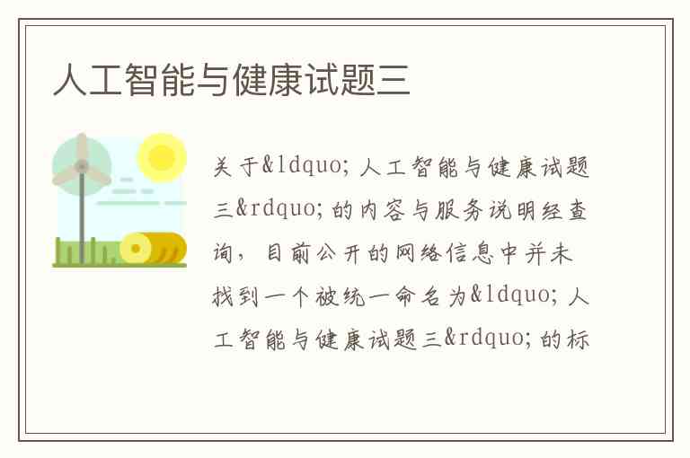 经查询,目前公开的网络信息中并未找到一个被统一命名为“人工智能与健康试题三”的标准化官方试题。通常,这类题目是各地区、各机构组织的“专业技术人员继续教育公需科目”培训的一部分。您提到的“试题三”很可能是指某套模拟练习题、历年真题集的第三套试卷,或者是特定培训课程中的第三次作业或测试。