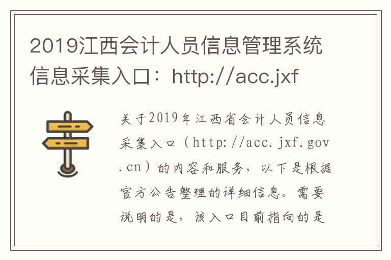 关于2019年江西省会计人员信息采集入口(http://acc.jxf.gov.cn)的内容和服务,以下是根据官方公告整理的详细信息。需要说明的是,该入口目前指向的是升级后的“江西省会计综合管理服务平台”,2019年的集中采集工作虽已截止,但平台作为全省会计人员管理的统一门户,其核心功能和服务仍在持续使用 -2-8。