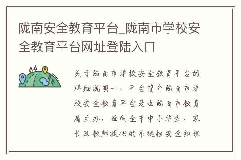 关于陇南市学校安全教育平台的详细说明