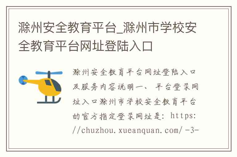 滁州市学校安全教育平台的官方指定登录网址是:https://chuzhou.xueanquan.com/ -3-4。同时,也有资料显示其旧版或关联域名为 https://chuzhou.safetree.com.cn/ -1-5。建议用户优先使用带 xueanquan 的域名访问,该平台是由中国教育学会协助建立的实验区平台 -5。