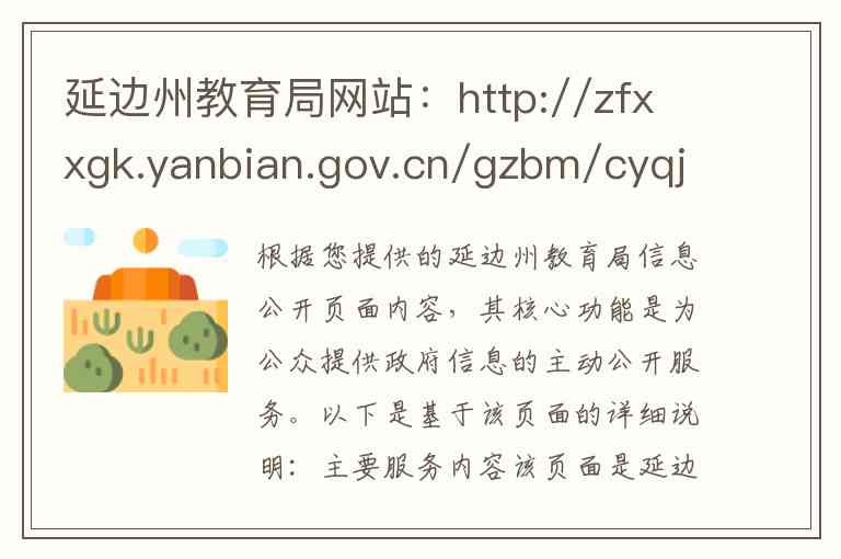 根据您提供的延边州教育局信息公开页面内容,其核心功能是为公众提供政府信息的主动公开服务。以下是基于该页面的详细说明:
