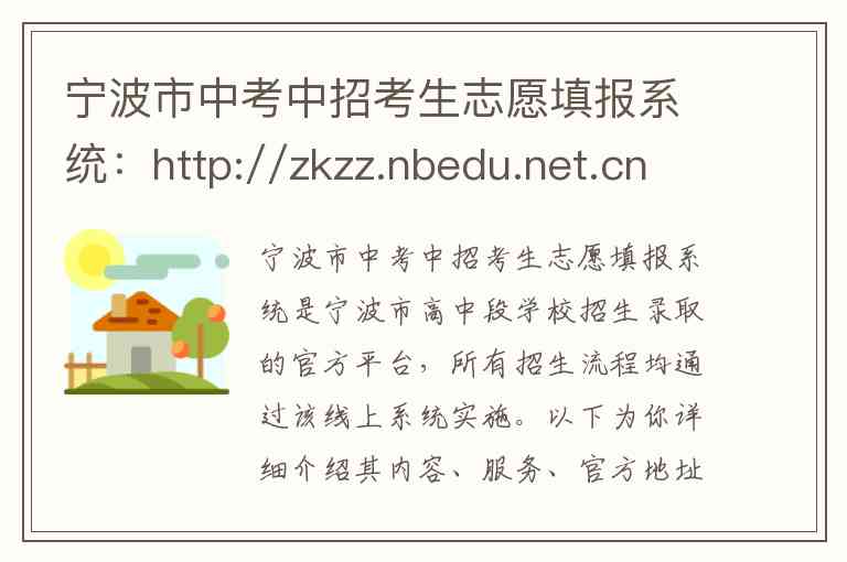 宁波市中考中招考生志愿填报系统是宁波市高中段学校招生录取的官方平台,所有招生流程均通过该线上系统实施。以下为你详细介绍其内容、服务、官方地址及联系方式。
