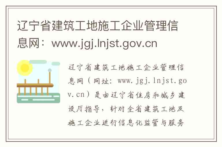 辽宁省建筑工地施工企业管理信息网(网址:www.jgj.lnjst.gov.cn)是由辽宁省住房和城乡建设厅指导,针对全省建筑工地及施工企业进行信息化监管与服务的重要平台。以下是关于该网站的内容、服务、主办单位及联系方式的详细说明: