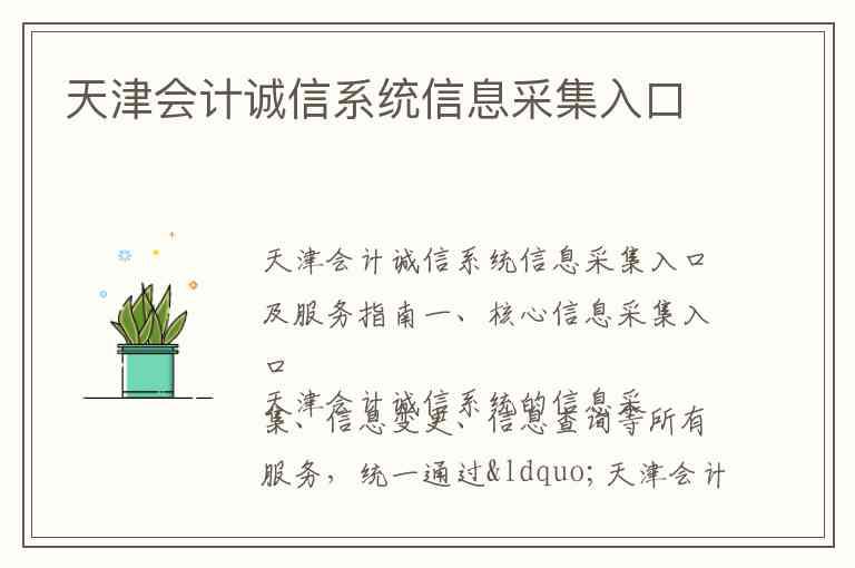 天津会计诚信系统信息采集入口及服务指南