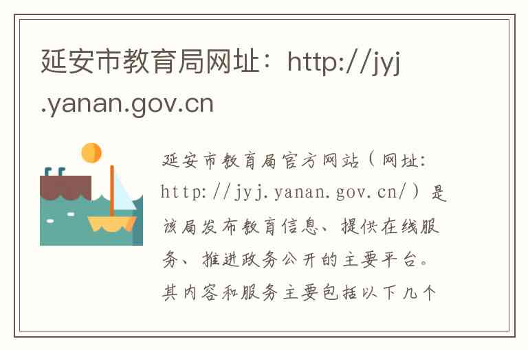 延安市教育局官方网站(网址:http://jyj.yanan.gov.cn/)是该局发布教育信息、提供在线服务、推进政务公开的主要平台。其内容和服务主要包括以下几个方面:
