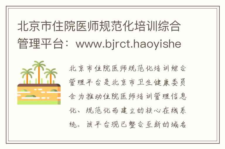 北京市住院医师规范化培训综合管理平台是北京市卫生健康委员会为推动住院医师培训管理信息化、规范化而建立的核心在线系统。该平台现已整合至新的域名下运行,为培训基地、带教师资和住院医师提供全流程管理服务。