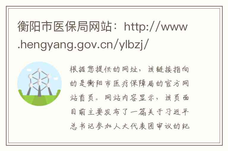 根据您提供的网址,该链接指向的是衡阳市医疗保障局的官方网站首页。网站内容显示,该页面目前主要发布了一篇关于习近平总书记参加人大代表团审议的纪实报道,并未直接展示关于该局本身的具体服务内容、详细的办公地址或联系方式。
