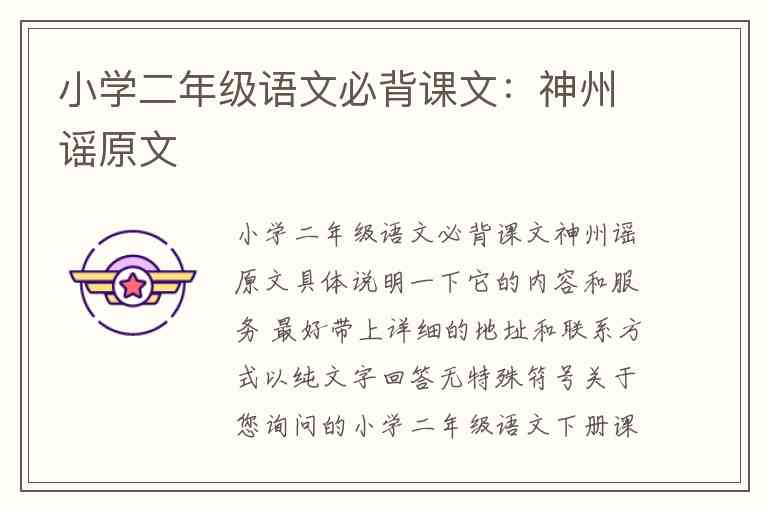 小学二年级语文必背课文神州谣原文具体说明一下它的内容和服务 最好带上详细的地址和联系方式以纯文字回答无特殊符号